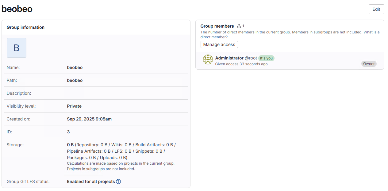 • Mục đíchGroup trong GitLab là nơi để gom các project lại với nhau và quản lý quyền truy cập cho nhiều người dùng cùng một lúc.