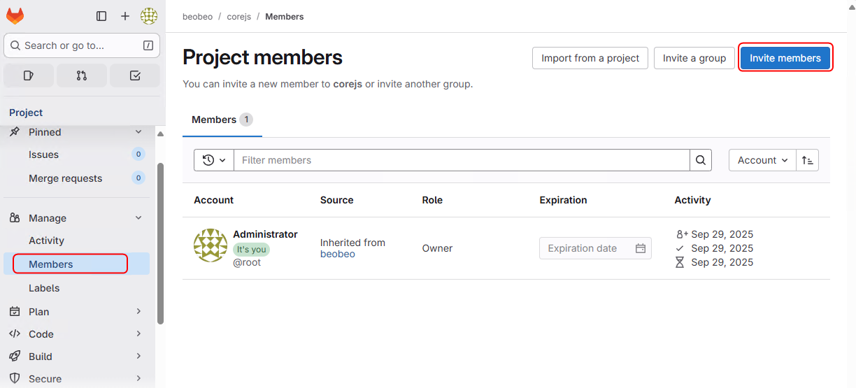 Vào nhóm vừa tạo, chọn Group information > Members -> Manager Access