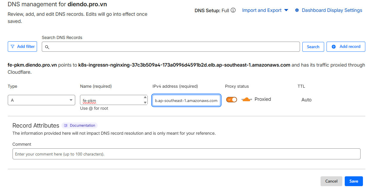 Copy địa chỉ này và trò bản ghi CNAME trên cloud flare