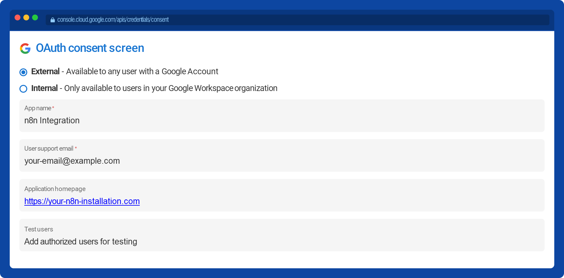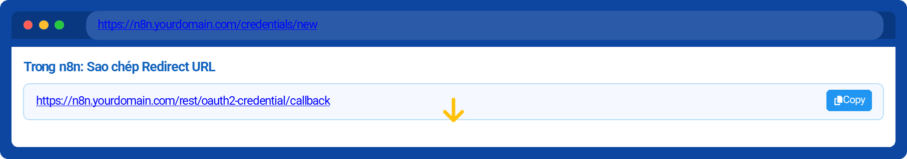 – Đây là bước quan trọng nhất để kết nối OAuth2 thành công. URL này cho phép Google chuyển hướng người dung trở lại n8n khi xác thực.