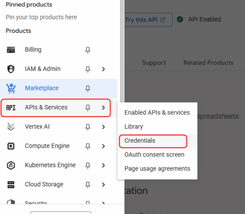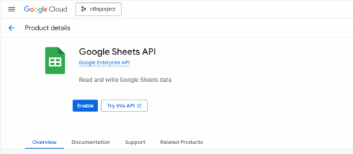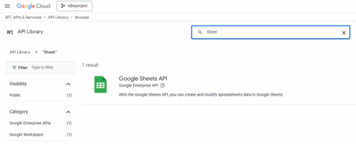 – Tìm kiếm API mà bạn cần (Ví dụ: Google Sheet API, Google Drive API)