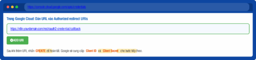 – Dán Client ID và Client Secret vào các ô tương ứng trong giao diện tạo Credential