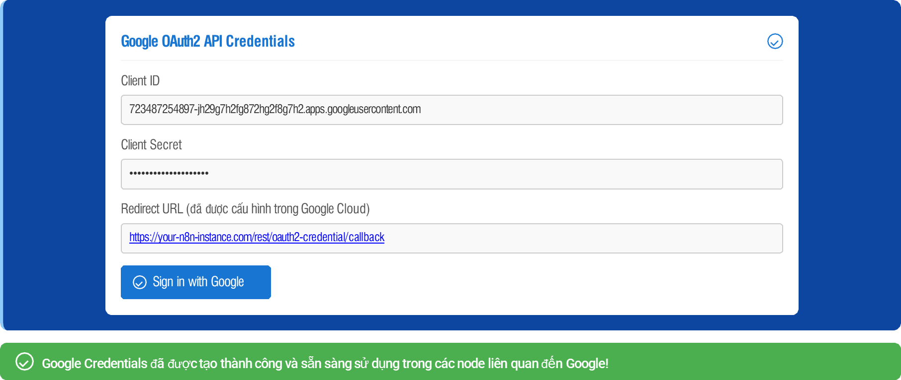 Bước 6: Hoàn hiện kết nối Google Credentials trong n8n