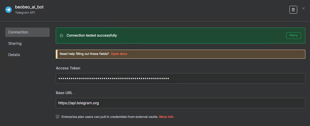 – n8n sẽ mã hóa thông tin khi bạn lưu chúng