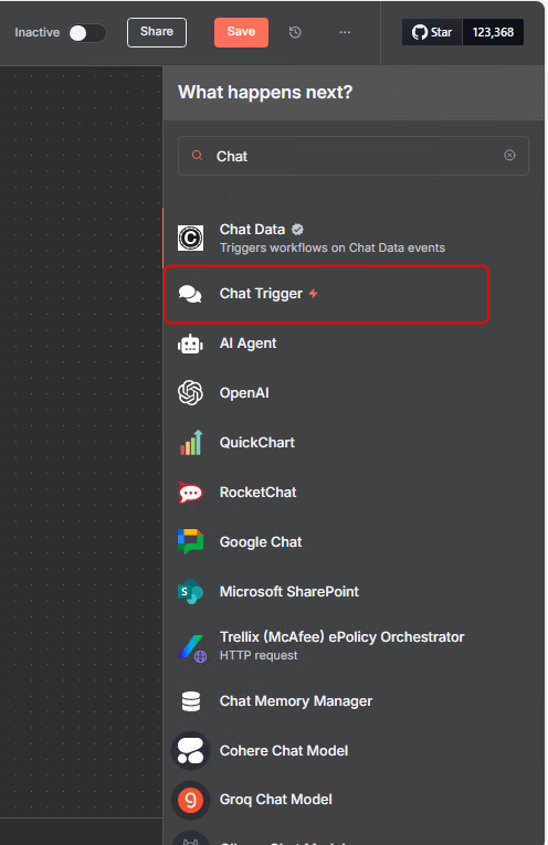Một số Webhook trigger: Telegram Trigger, Shopify Trigger, Webhook Node, GitHub Trigger,…
