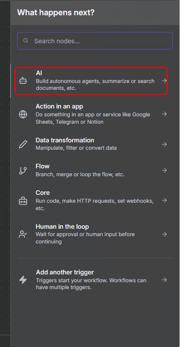 – Action Nodes: là cầu nối giữa n8n và các dịch vụ bên ngoài, giúp workflow của bạn tương tác với thế giới thực