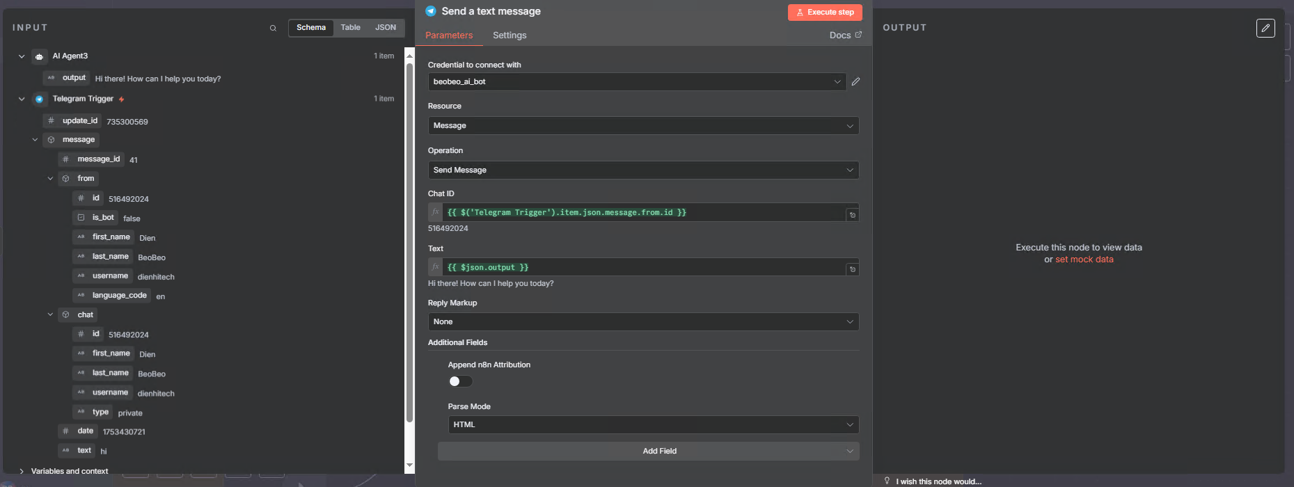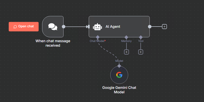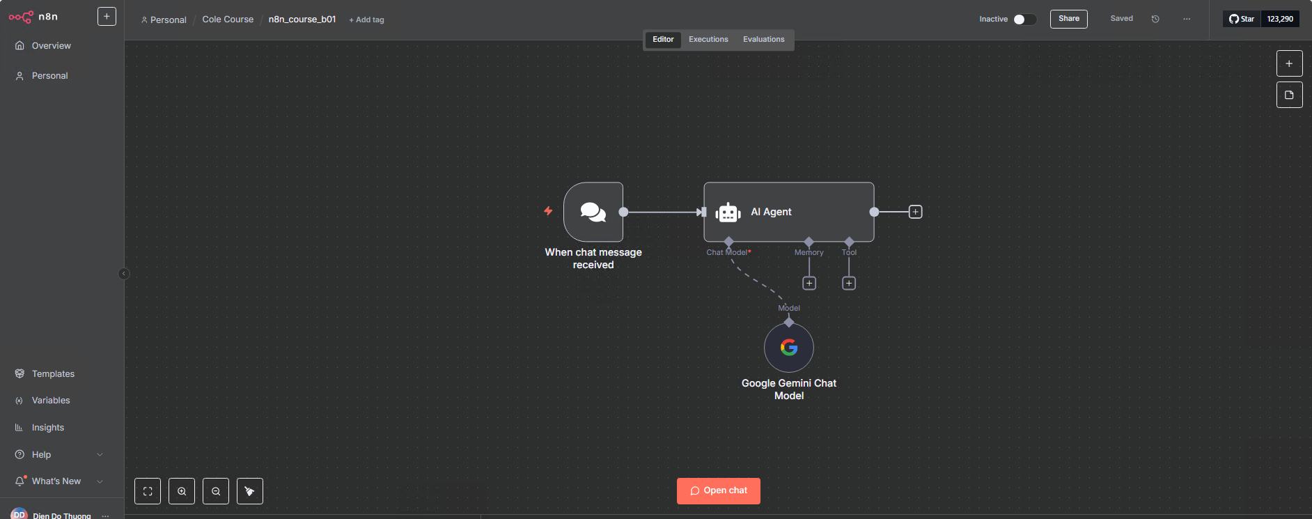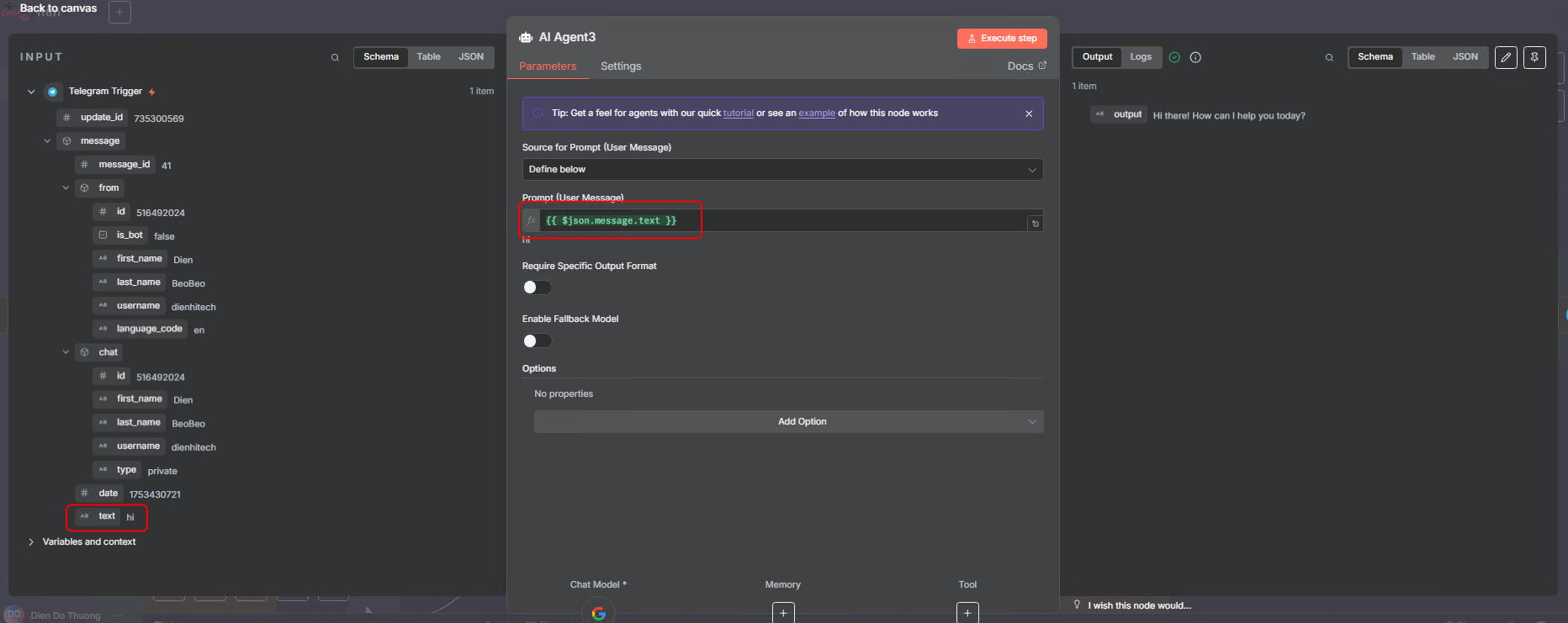 • Thêm AI Agent và Google Gemini Chat Model vào Cavans