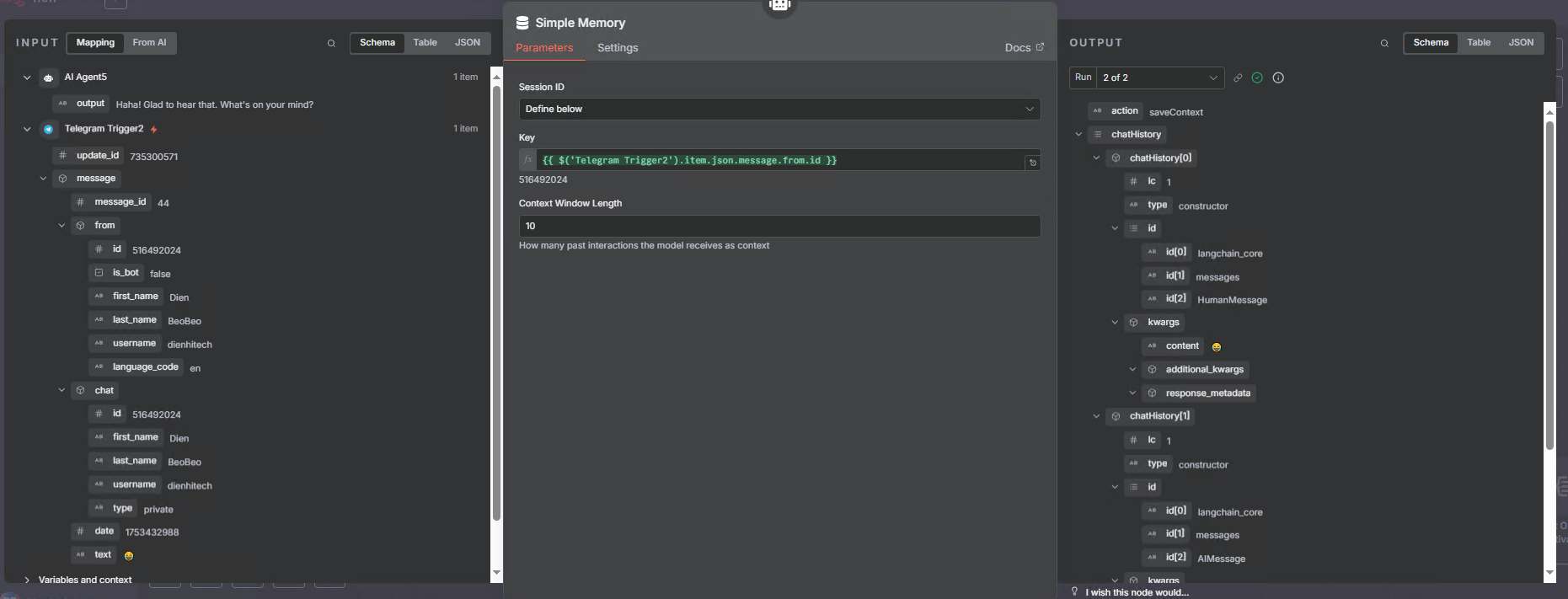 • Để AI Agent có thể lưu được các nội dung chat và thực hiện trả lời chuyên sau ta cần thêm Simple Memory