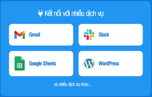 – Ví dụ: Gửi tin nhắn telegram, Thêm dòng vào Google Sheet, Tạo file trên Google Drive, Gửi Email