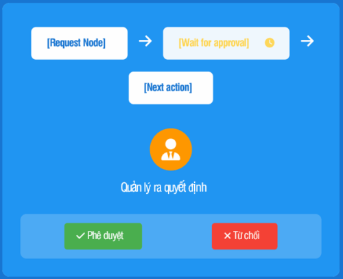 Ví dụ: Quy trình duyệt chi phí – Workflow gửi email cho quản lý với 2 link “Phê duyệt”/”Từ chối”. Workflow sẽ chỉ tiếp tục khi nhận được phải hồi từ con người (một trong 2 link được nhấn).