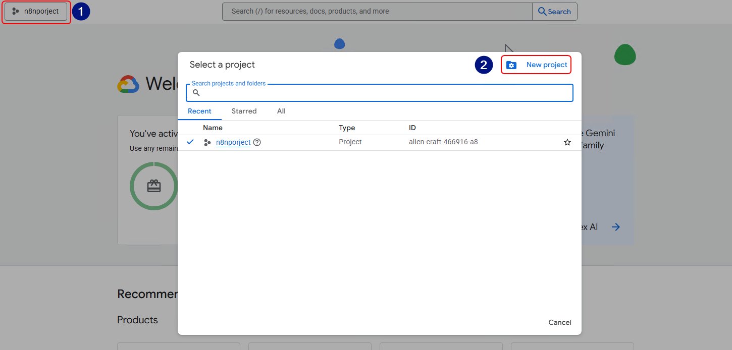 – Trong Google Cloud Console, chọn Project vừa tạo
