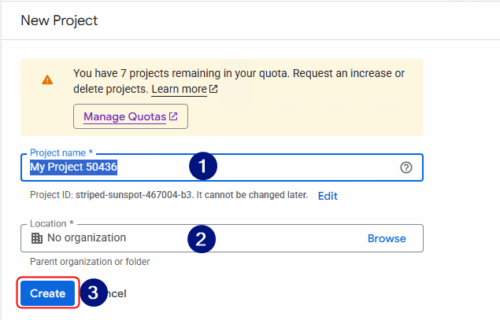– Truy cập Google Cloud Console, chọn dự án đã tạo