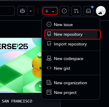 1. Ở góc trên bên phải, nhấn dấu “+” -> New repository