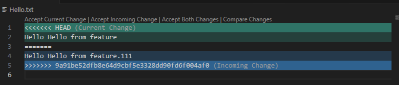 Giải quyết conflict bằng cách chọn nội dung mong muốn bằng các xóa các dòng đánh dấu.