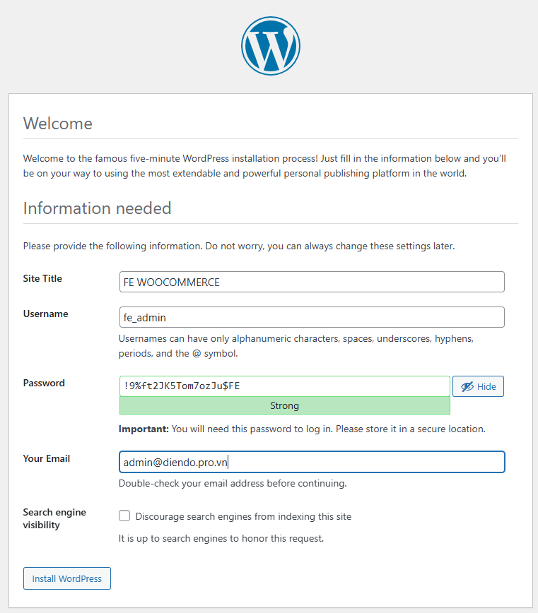 Bước 3: Tiến hành cài đặt wordpress cho frontend và backend