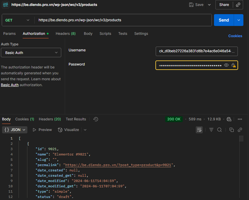 Như vậy đã gọi được API lấy dữ liệu