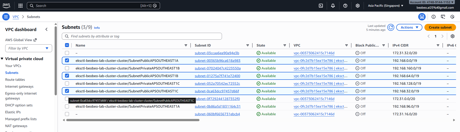 - eksctl-beobeo-lab-cluster-cluster/SubnetPublicAPSOUTHEAST1A