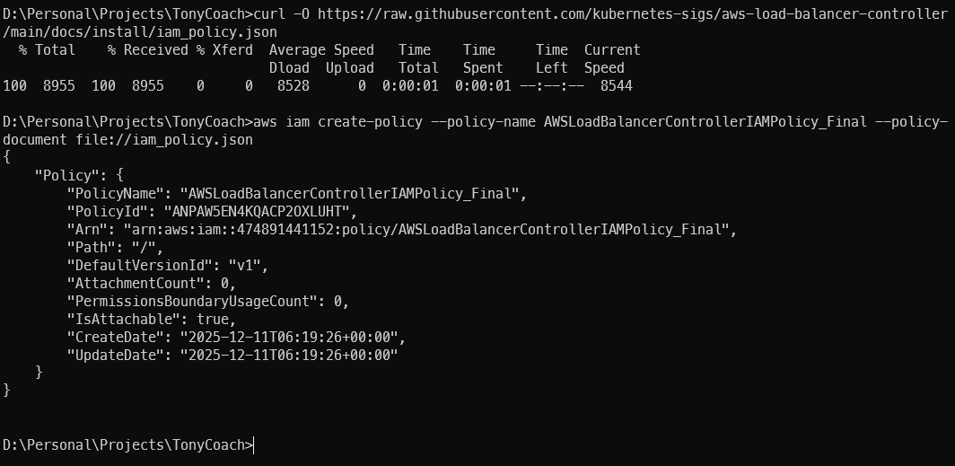 aws iam create-policy --policy-name AWSLoadBalancerControllerIAMPolicy_Final --policy-document file://iam_policy.json