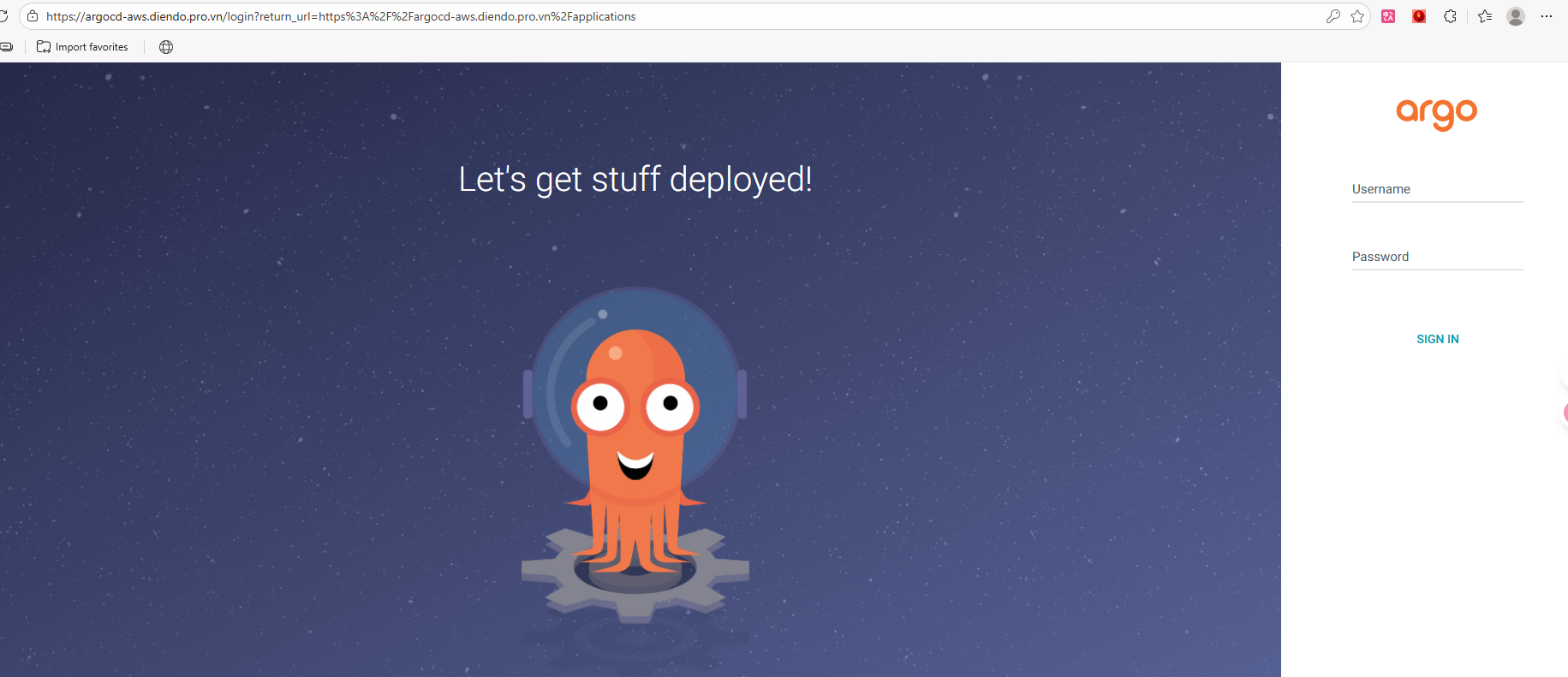 Truy cập vào link: argocd-aws.diendo.pro.vn
