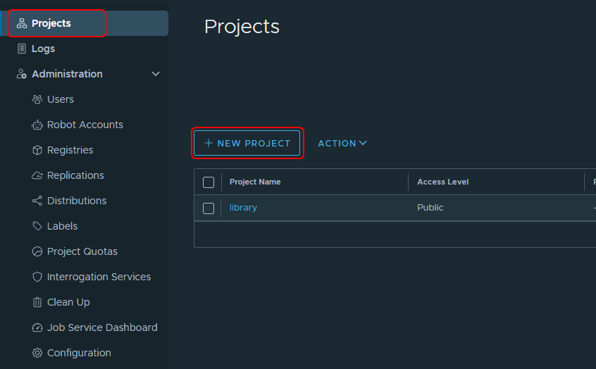 1. Ta login vào Harbor sau đó vào Projects > New Project.