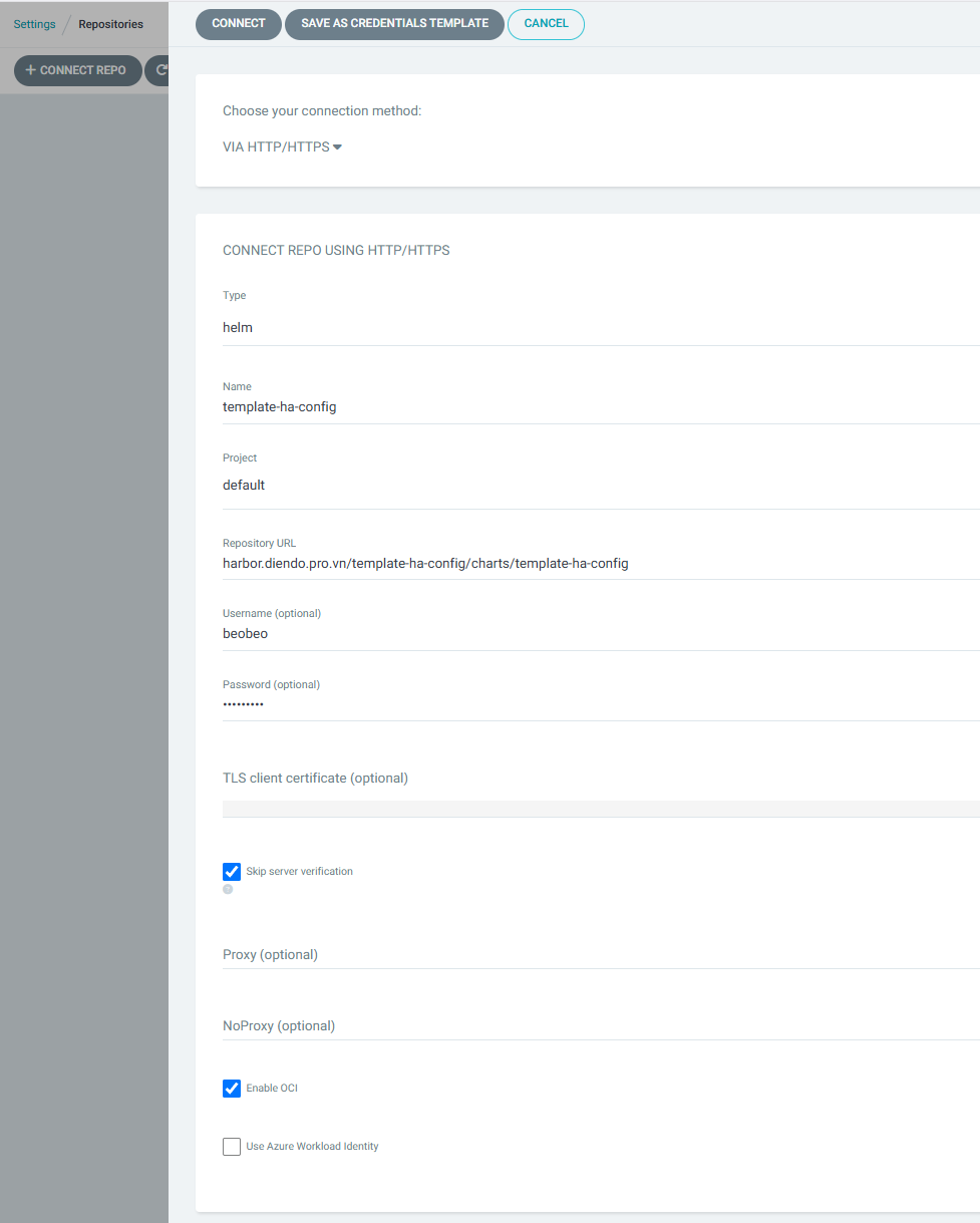 Ta tiến hành kết nối Harbor Repo theo thứ tự như hình bên dưới: