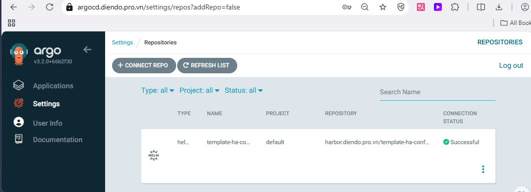 Bước 4: Triển khai với helm lưu trữ trên Harbor bằng ArgoCD