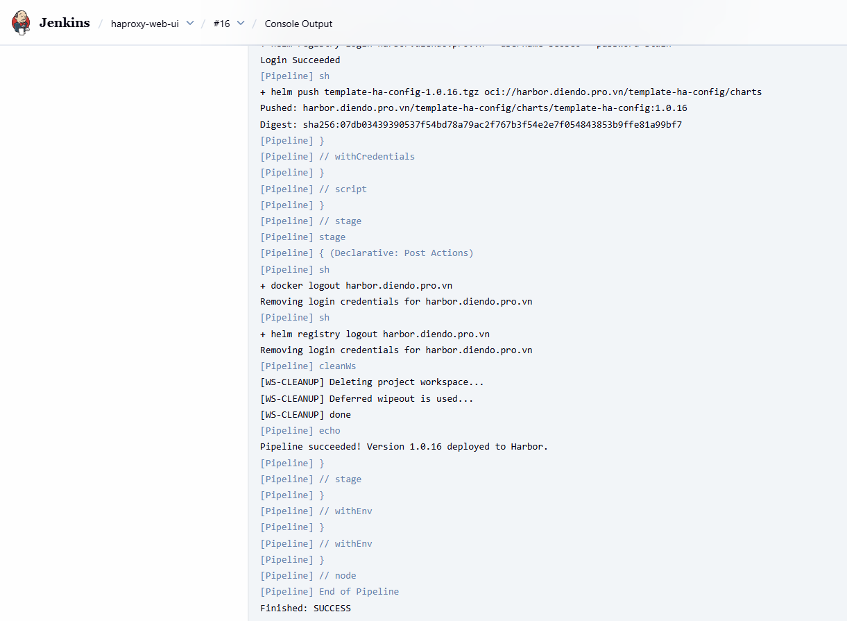 Bây giờ chart đã sẵn sàng. Chúng ta sẽ đóng gói (package) và đẩy (push) lên project template-ha-config trên Harbor.